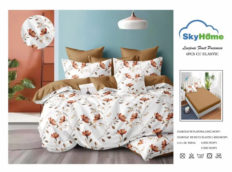 Descoperă Lenjerii de pat Finet 6 piese cu Elastic, Alb cu flori maro si portocalii-SKE23, setul care aduce în dormitorul tău echilibrul perfect între stil și confort practic. Realizată dintr-un material plăcut la atingere și rezistent, această lenjerie este concepută pentru a-ți oferi un somn liniștit și odihnitor, noapte de noapte.