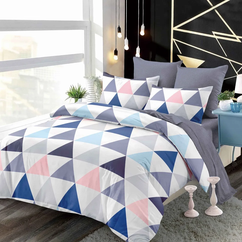 PRIMAVARA Lenjerii de pat Finet 6 piese cu Elastic, alb cu triunghiuri albastre și roz-FEL287