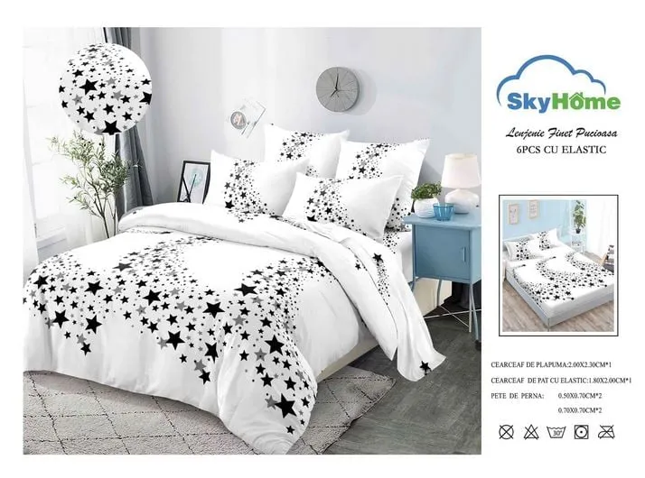 SKY HOME Lenjerii de pat Finet 6 piese cu Elastic-FEL221