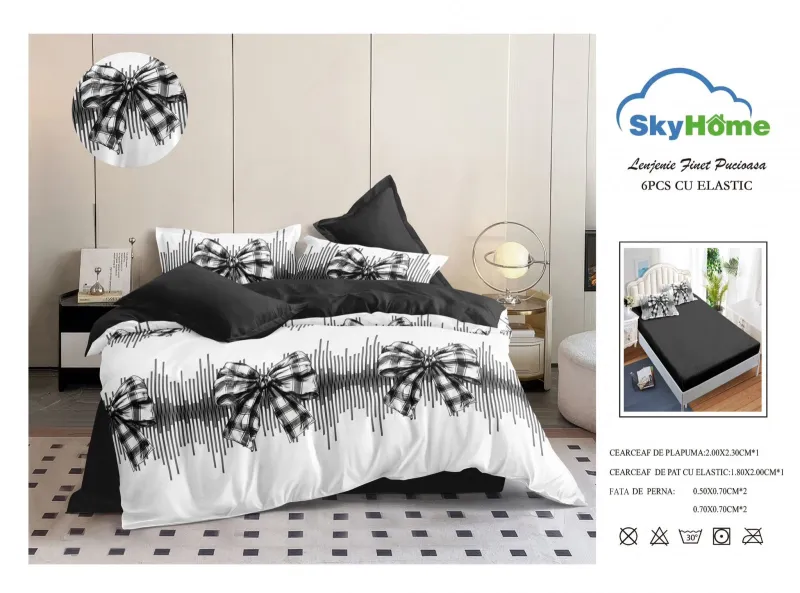Descoperă Lenjerii de pat Finet 6 piese cu Elastic-SKE1, setul care aduce în dormitorul tău echilibrul perfect între stil și confort practic. Realizată dintr-un material plăcut la atingere și rezistent, această lenjerie este concepută pentru a-ți oferi un somn liniștit și odihnitor, noapte de noapte.