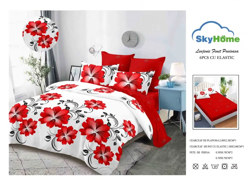 Descoperă Lenjerii de pat Finet 6 piese cu Elastic-SKE15, setul care aduce în dormitorul tău echilibrul perfect între stil și confort practic. Realizată dintr-un material plăcut la atingere și rezistent, această lenjerie este concepută pentru a-ți oferi un somn liniștit și odihnitor, noapte de noapte.