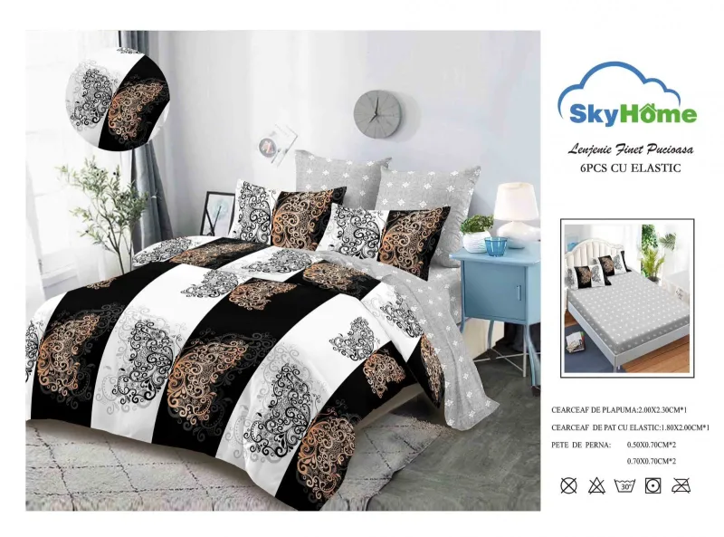 SKY HOME Lenjerii de pat Finet 6 piese cu Elastic-SKE18