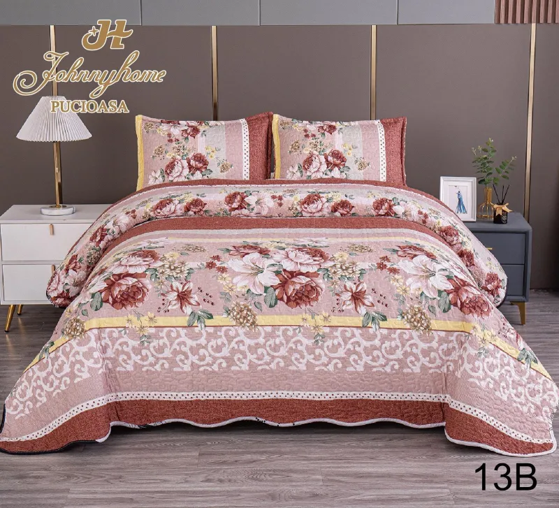 PUCIOASA Cuvertura Pat dublu din Bumbac Satinat,3 piese-V13B