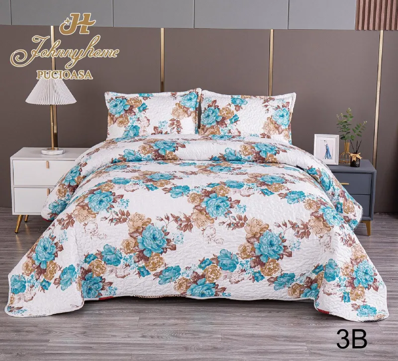 PUCIOASA Cuvertura Pat dublu din Bumbac Satinat,3 piese-V3B