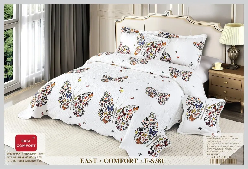 EAST COMFORT Cuvertura matlasata din bumbac 5 piese,Alb cu Fluturi colorati-ES381