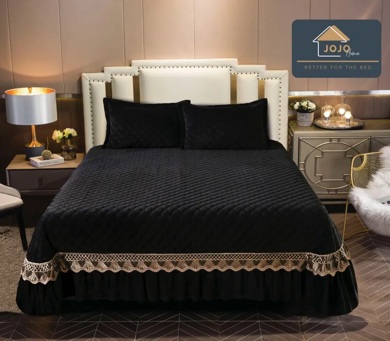 JOJO HOME Cuvertura de Catifea+2 Fete de perna,Negru-C3
