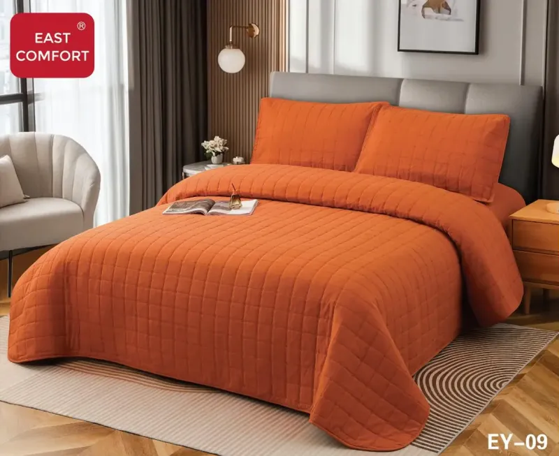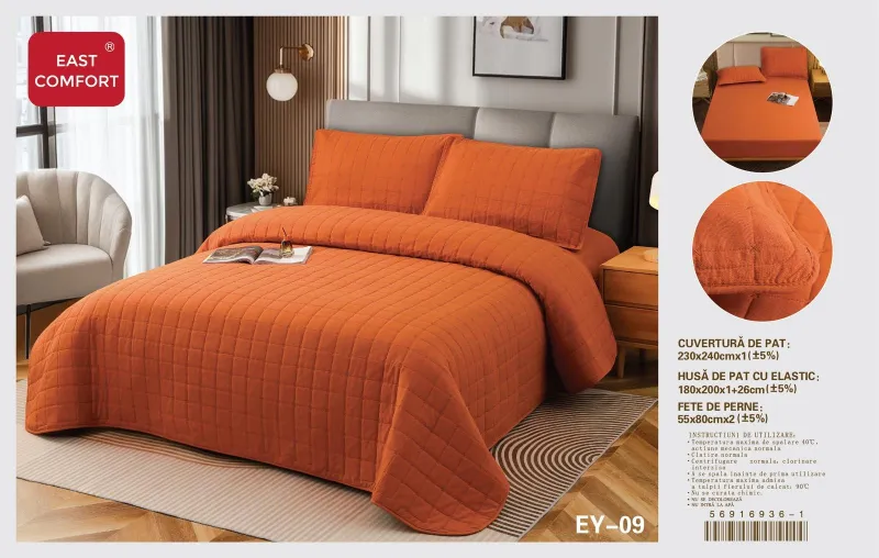 EAST COMFORT Cuvertura+Husa de pat cu elastic+2 Fete de perna,Portocaliu-EY09