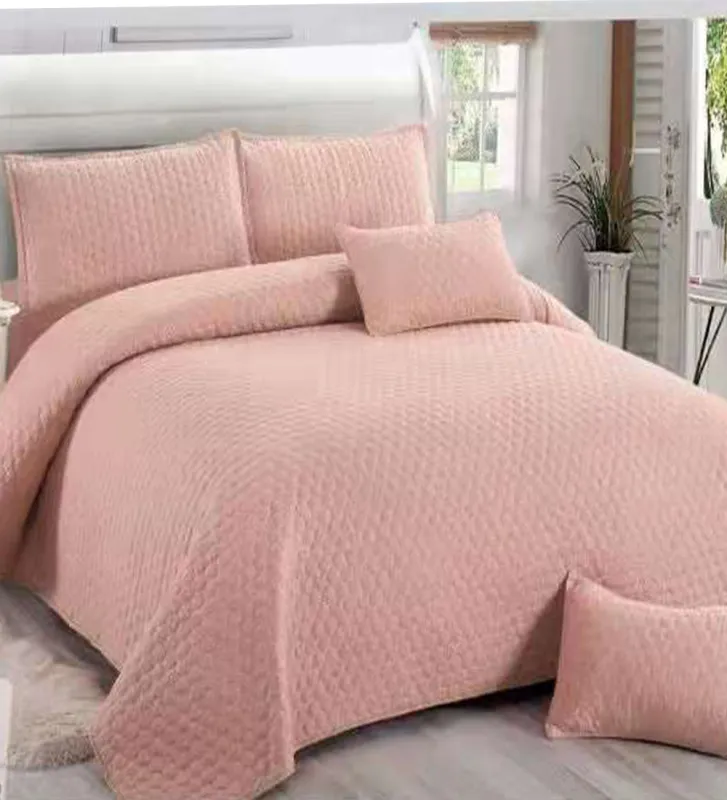 EAST COMFORT Cuvertura Pat matlasată, Policoton, Tesatura Ranforce, 5 Piese,Roz Pudra -E264