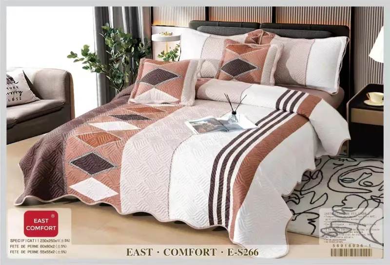 Cuverturile pentru pat sunt utilizate pentru decorarea dormitorului dumneavoastra si in acelasi timp de a proteja lenjeria pentru pat de impuritati. Confectionate din bumbac 80% si satin 20%, cuverturile pentru pat sunt decorate cu imprimeuri sofisticate realizate cu masinarii de ultima generatie pentru a oferi o rezistenta sporita in timp. Cuverturile sunt ideale pentru toate anotimpurile. Materialele folosite sunt de calitate buna, produsul putând fi folosit un timp foarte îndelungat. Gama de modele este larga incepand de la modele clasice pana la cele mai moderne designuri, în diferite culori, clare si luminoase.Cuverturile de pat contureaza perfect un decor remarcabil in orice dormitor.