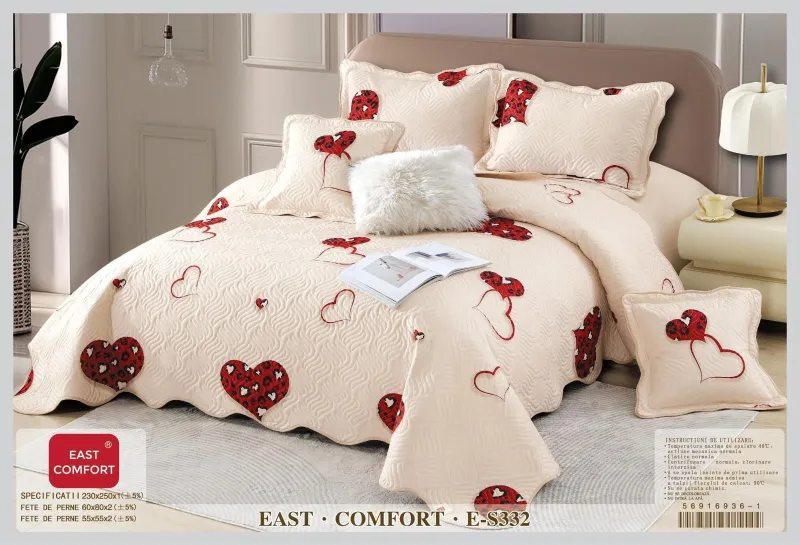 EAST COMFORT Cuvertura matlasata din bumbac 5 piese,Inimioare-ES332