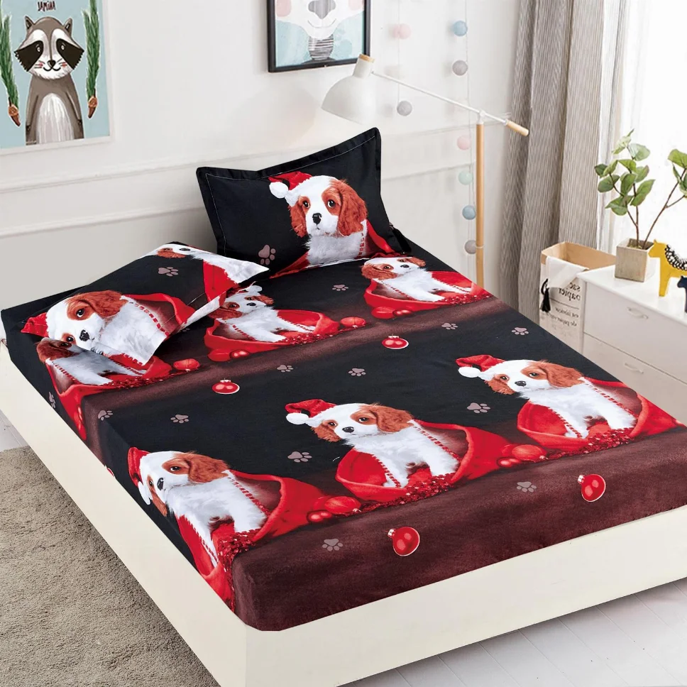 Pregătește-ți dormitorul pentru cea mai magică perioadă a anului cu Husa de pat din Finet cu elastic, negru cu cățeluși Moș Crăciun-HMJ24. Creată special pentru a aduce bucuria Crăciunului în casa ta, această husă de pat este confecționată dintr-un material Finet, cunoscut pentru textura sa moale și călduroasă. Datorită elasticului cusut de jur împrejur, se fixează perfect pe saltea, eliminând cutele inestetice. Astfel, patul tău va arăta impecabil și festiv în fiecare zi.