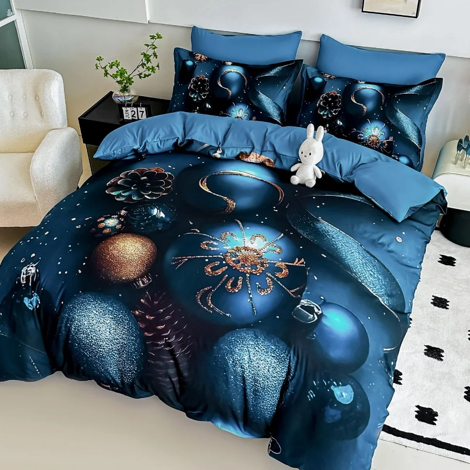 Transformă-ți dormitorul într-un tărâm de poveste în perioada sărbătorilor! Cu lenjeria de pat Lenjerie de pat dublu 6 piese, albastru cu globuri aurii sclipitoare-PX27, aduci magia Crăciunului direct în casa ta. Datorită cearceafului de pat cu elastic, se va așeza perfect pe saltea, fără cute inestetice, asigurându-ți un somn odihnitor în nopțile reci de iarnă.