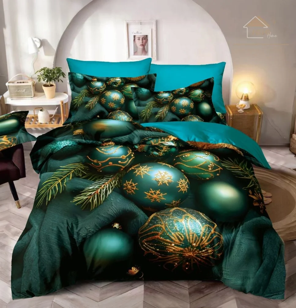 Transformă-ți dormitorul într-un tărâm de poveste în perioada sărbătorilor! Cu lenjeria de pat Lenjerie de pat dublu 6 piese, globuri verzi cu accente aurii-PX14, aduci magia Crăciunului direct în casa ta. Datorită cearceafului de pat cu elastic, se va așeza perfect pe saltea, fără cute inestetice, asigurându-ți un somn odihnitor în nopțile reci de iarnă.