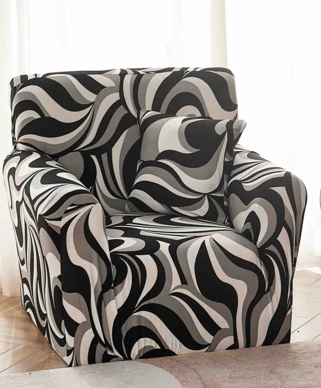 JOJO HOME Husa Elastica pentru Fotoliu cu brate,Alb/Gri Spirala-S39