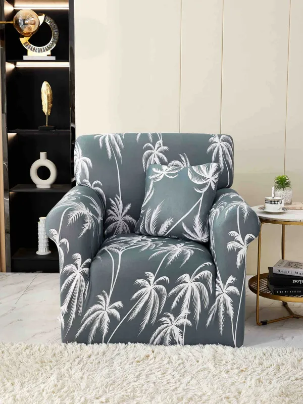 JOJO HOME Husa Elastica pentru Fotoliu cu brate,Gri cu Palmieri-S04