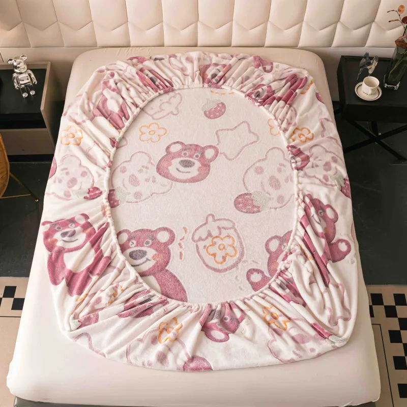 JOJO HOME Huse de pat cocolino 180x200 cm cu ursuleți roz și căpșuni-HJC9