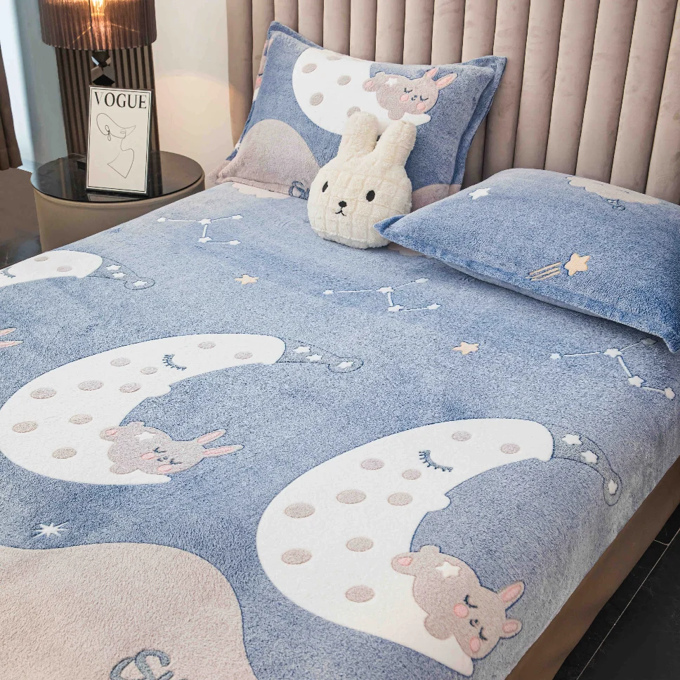Descoperă confortul suprem și protejează-ți salteaua cu Huse de pat cocolino 180x200 cm cu flori lila și alb, cu lună și nori pufoși-HJC145. Creată dintr-un material Cocolino excepțional de pufos și moale la atingere, această husă de pat cu elastic este soluția ideală pentru a-ți îmbrăca salteaua de 180x200 cm. Nu doar că adaugă un strat suplimentar de căldură în nopțile răcoroase, dar reîmprospătează instant aspectul dormitorului tău.