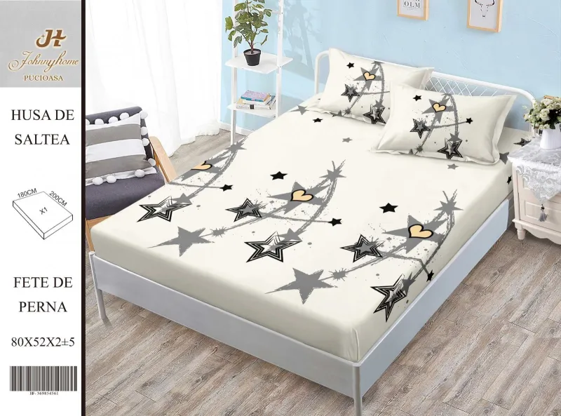 PUCIOASA Husa de pat din Finet cu elastic+ 2 fete de perna 180x200 -HG274