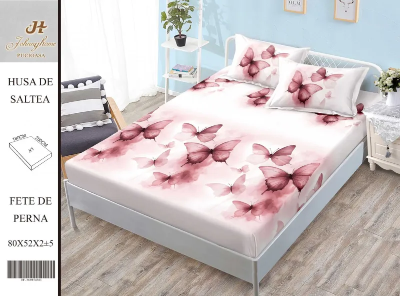 PUCIOASA Husa de pat din Finet cu elastic+ 2 fete de perna 180x200 -HG289