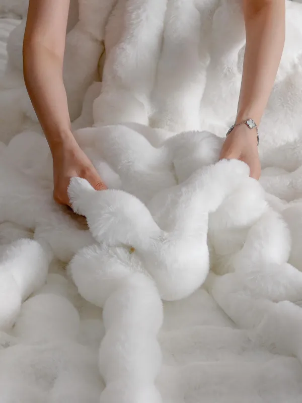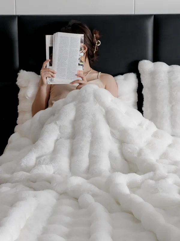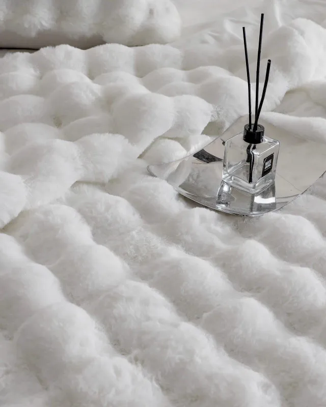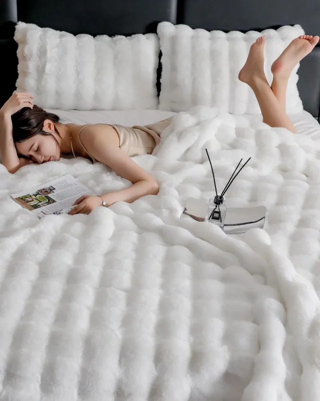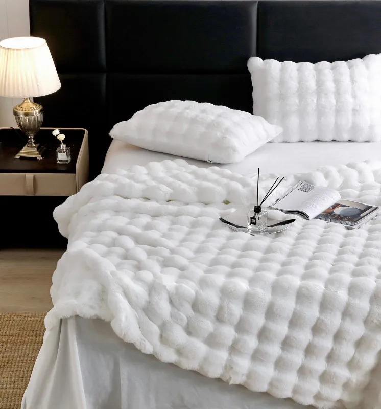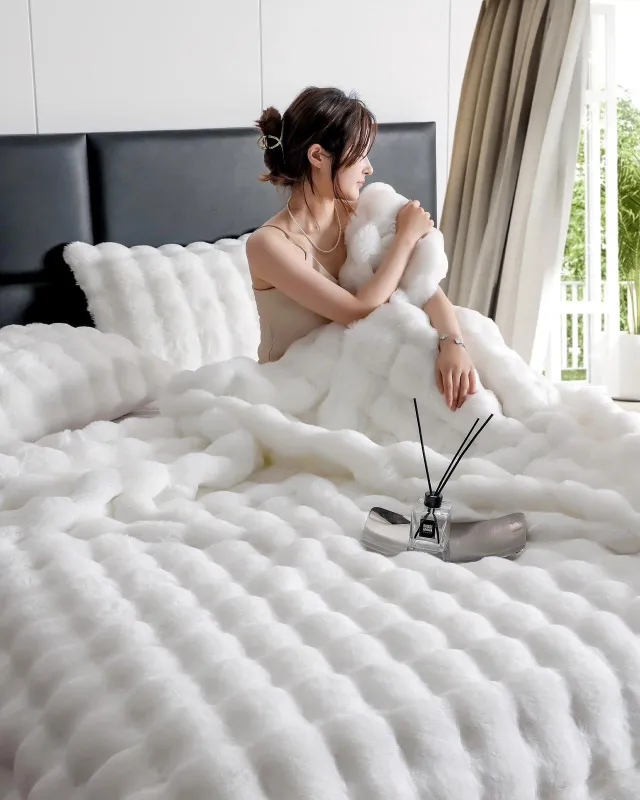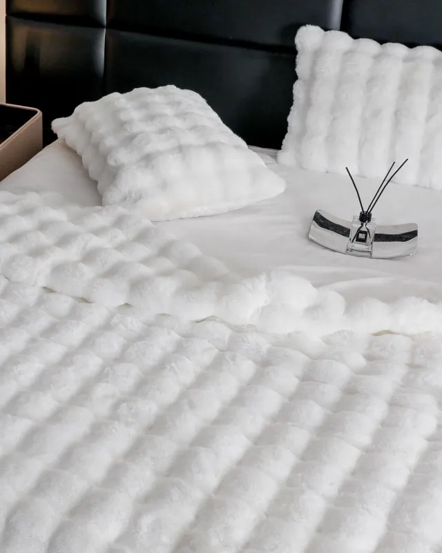 JOJO HOME Lenjerie pat dublu, Extra Pufoasa,din Blanita artificiala de Iepure, 6 piese,Alb-BV2