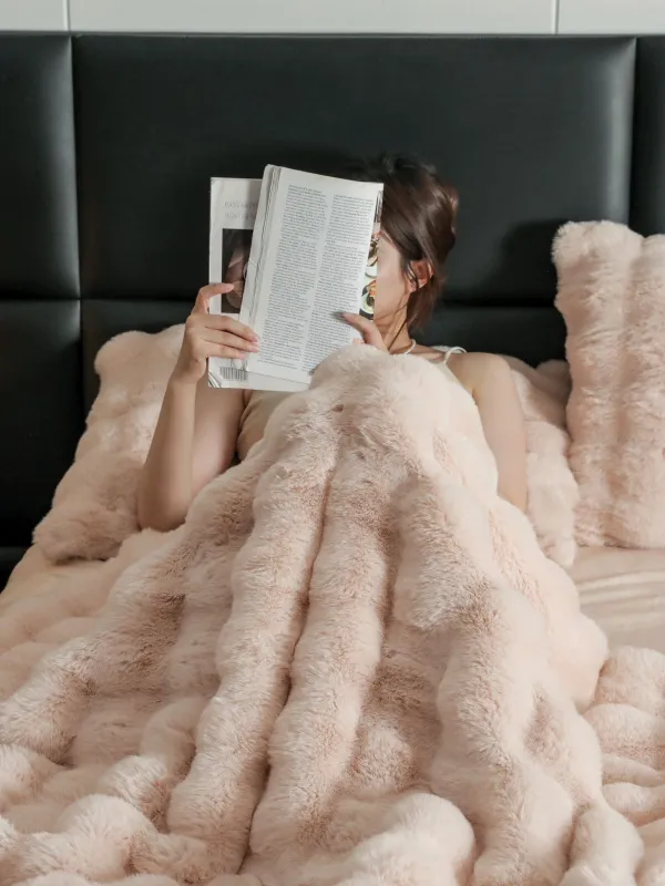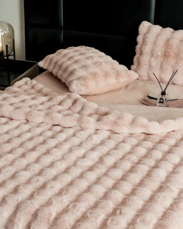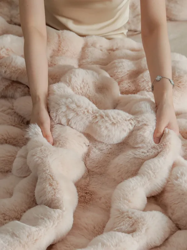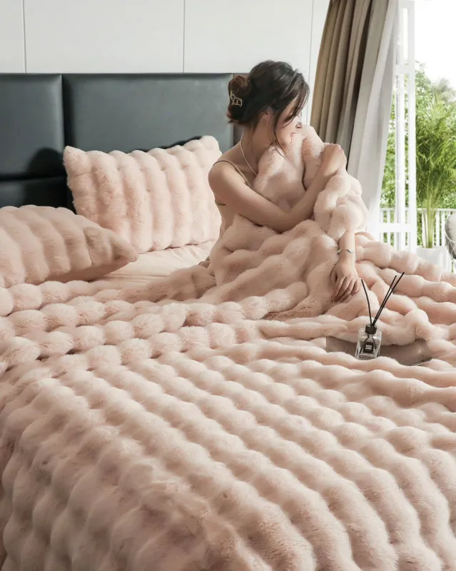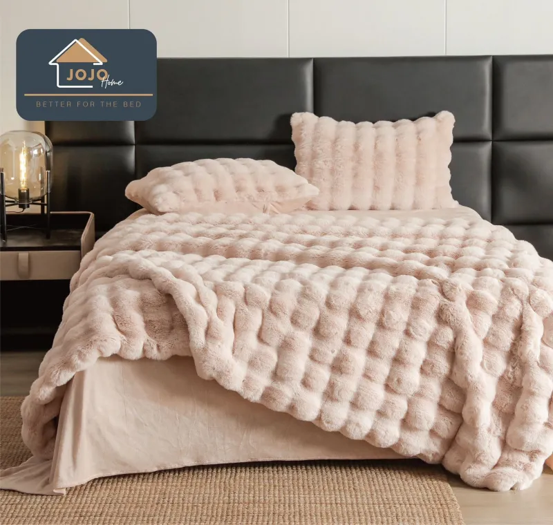 JOJO HOME Lenjerie pat dublu, Extra Pufoasa,din Blanita artificiala de Iepure, 6 piese,Bej inchis-BV7