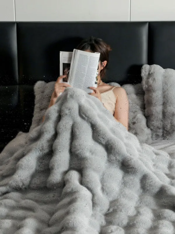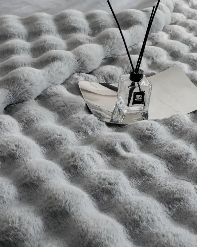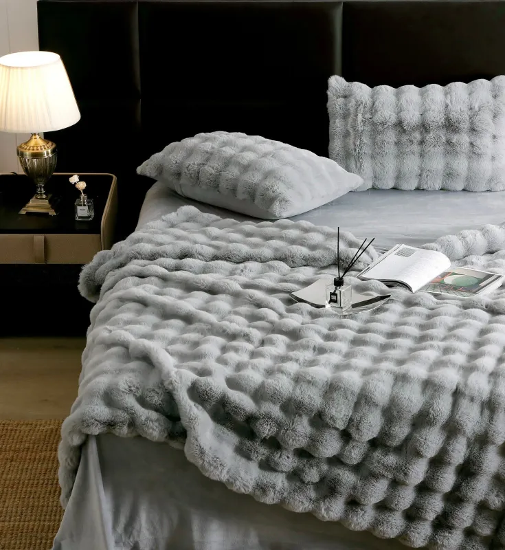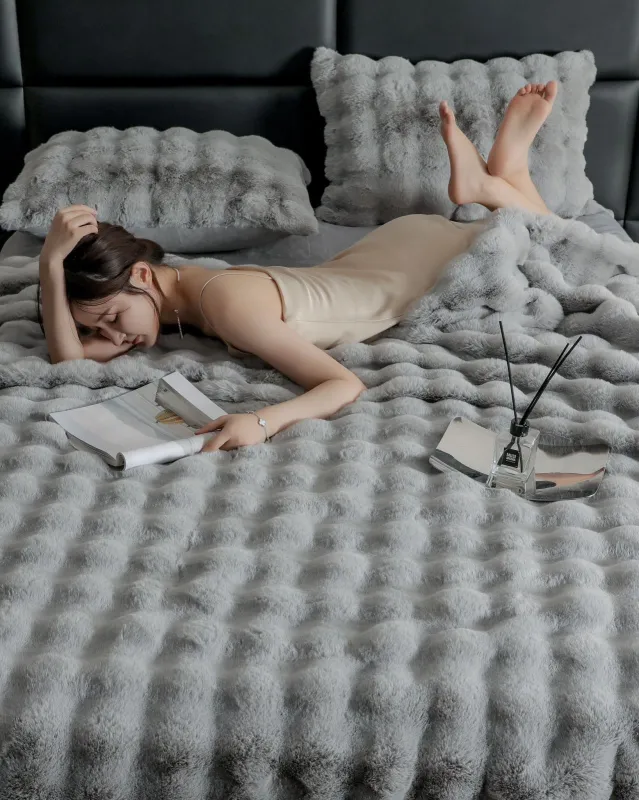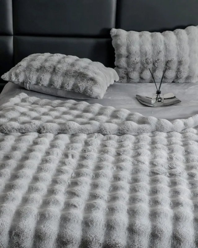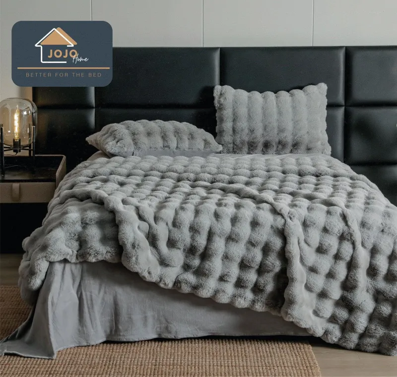 JOJO HOME Lenjerie pat dublu, Extra Pufoasa,din Blanita artificiala de Iepure, 6 piese,Gri-BV5
