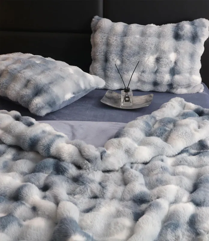 JOJO HOME Lenjerie pat dublu, Extra Pufoasa,din Blanita artificiala de Iepure, 6 piese,Gri degrade-BV16