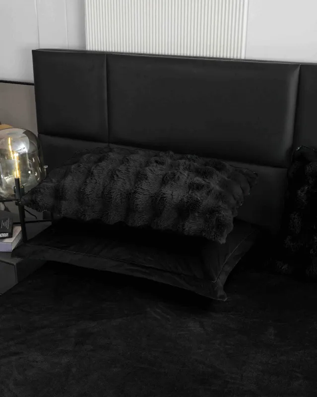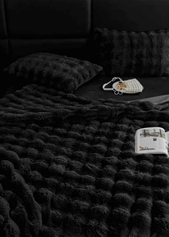 JOJO HOME Lenjerie pat dublu, Extra Pufoasa,din Blanita artificiala de Iepure, 6 piese,Negru-BV3