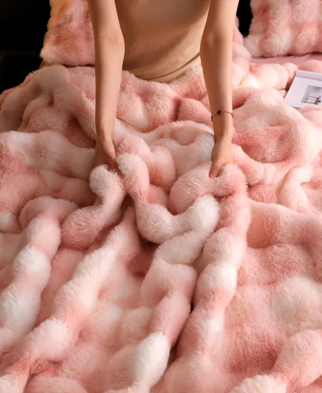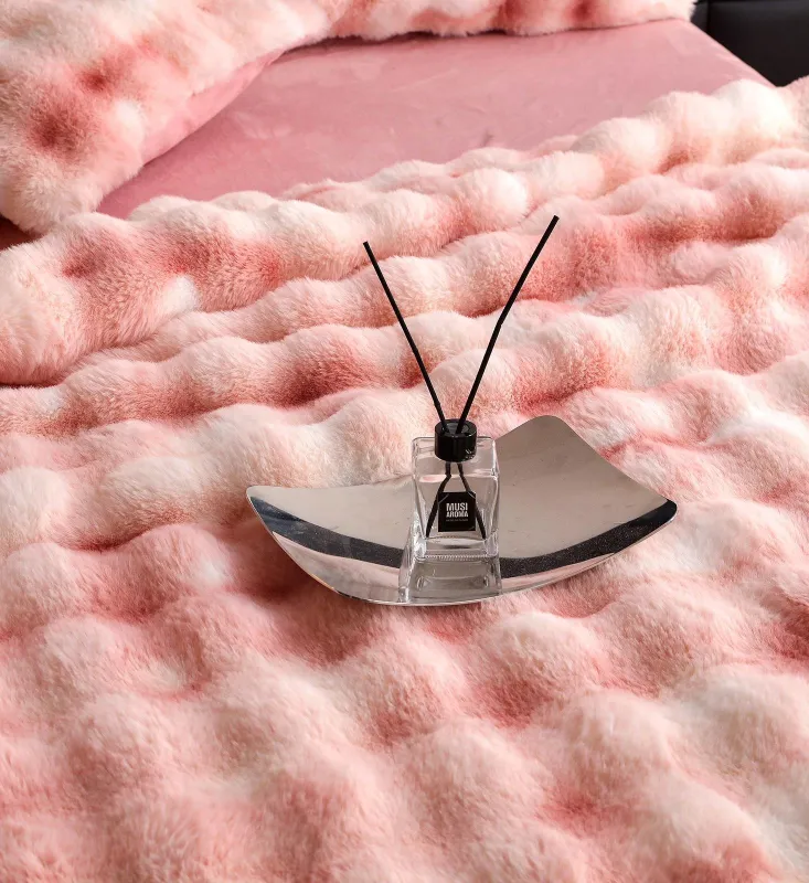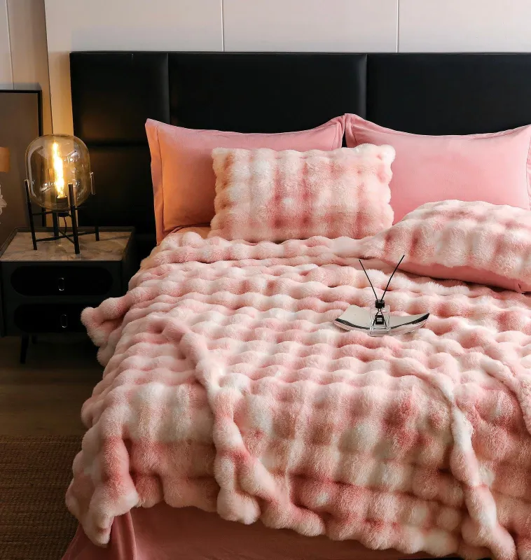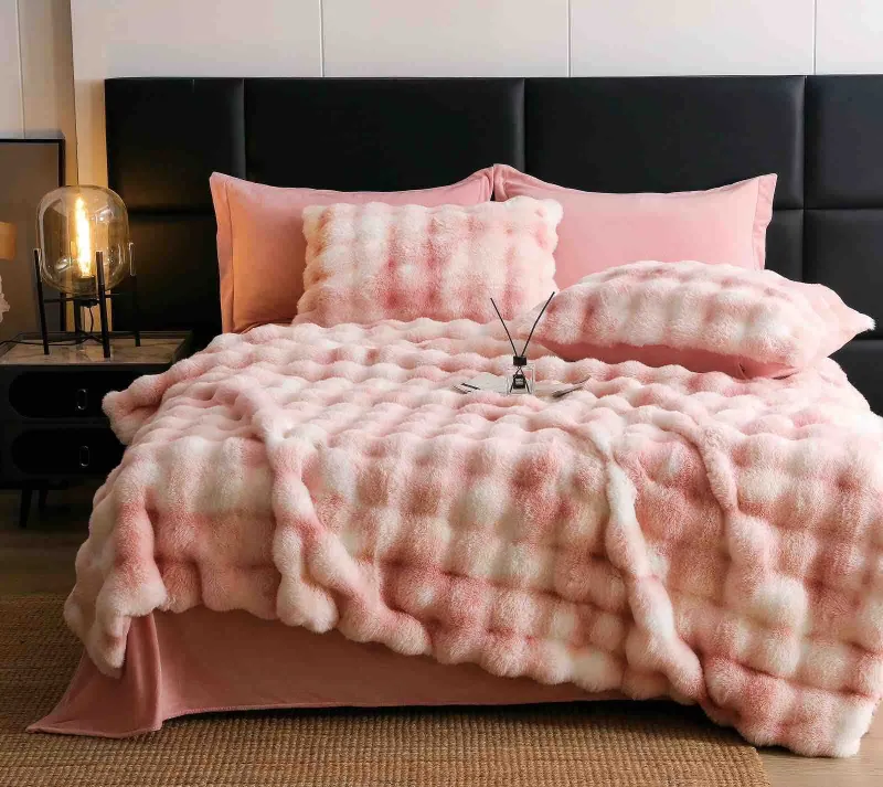 JOJO HOME Lenjerie pat dublu, Extra Pufoasa,din Blanita artificiala de Iepure, 6 piese,Roz degrade-BV8