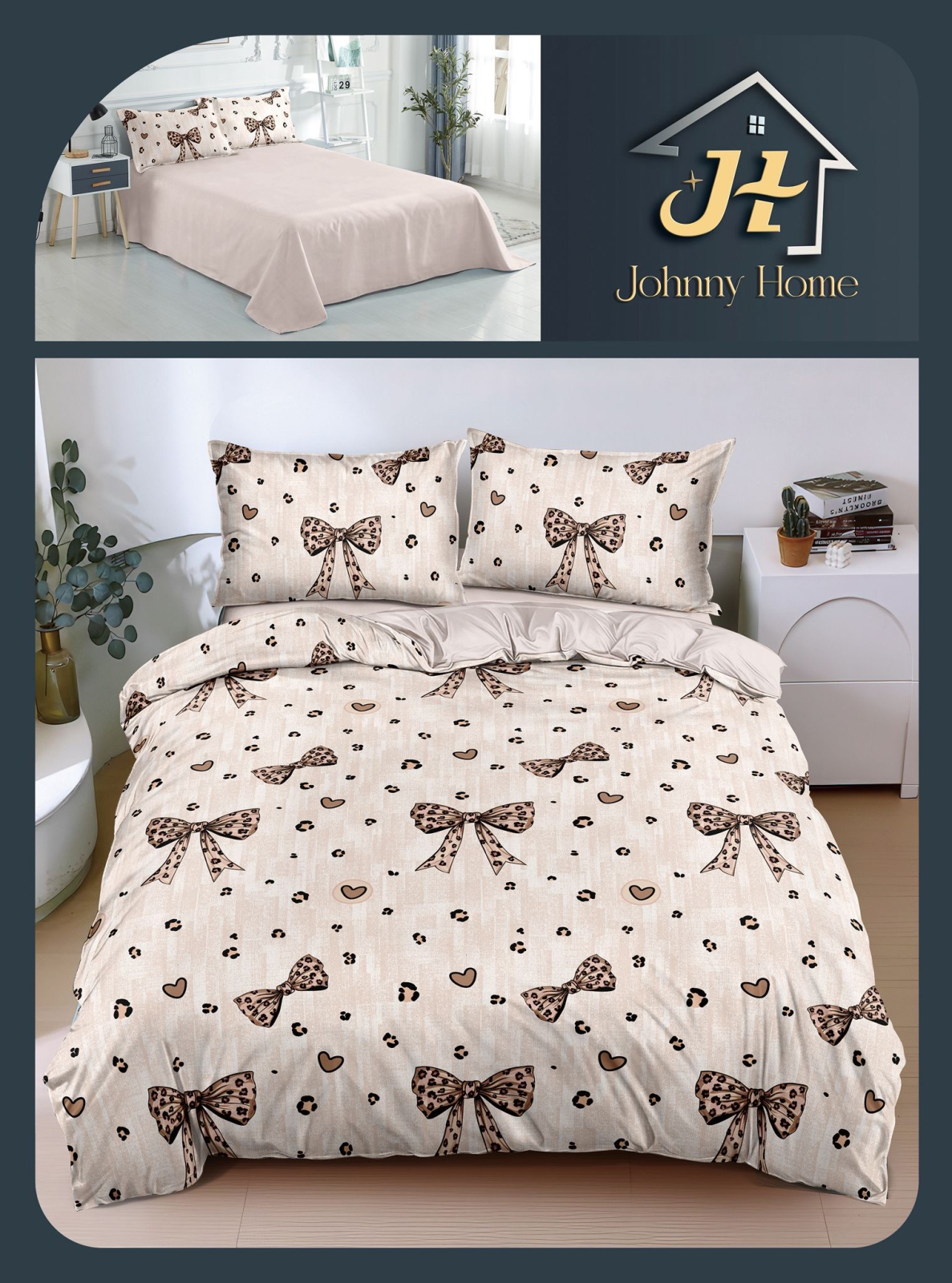 JOHNNY HOME Lenjerie de pat 4 piese,bumbac satinat,cu Fundite-BS697