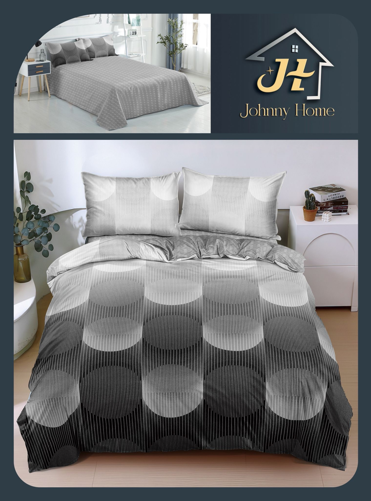 JOHNNY HOME Lenjerie de pat 4 piese,bumbac satinat,Gri cu Buline abstracte-BS703