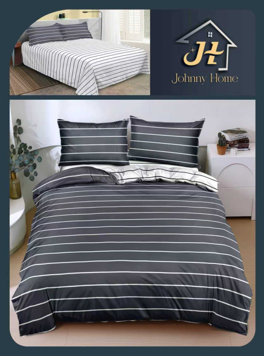 JOHNNY HOME Lenjerie de pat 4 piese,bumbac satinat ,Gri cu dungute-BS94