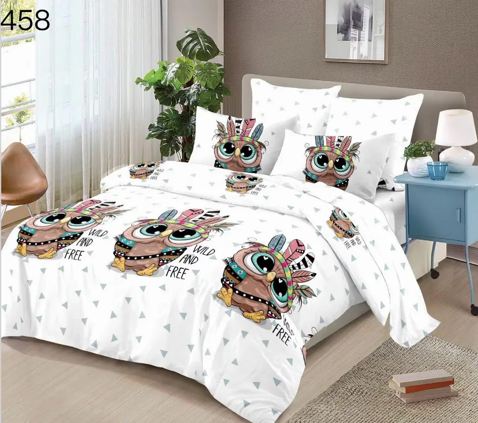 EAST COMFORT Lenjerie de pat Finet 6 piese, alb cu bufnițe drăguțe și triunghiuri-GR458