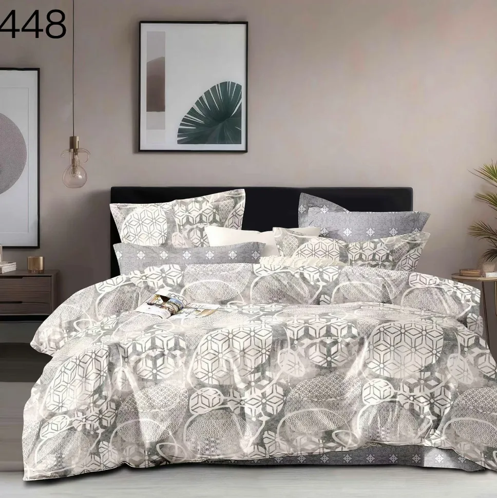 EAST COMFORT Lenjerie de pat Finet 6 piese, alb cu model geometric gri-GR448