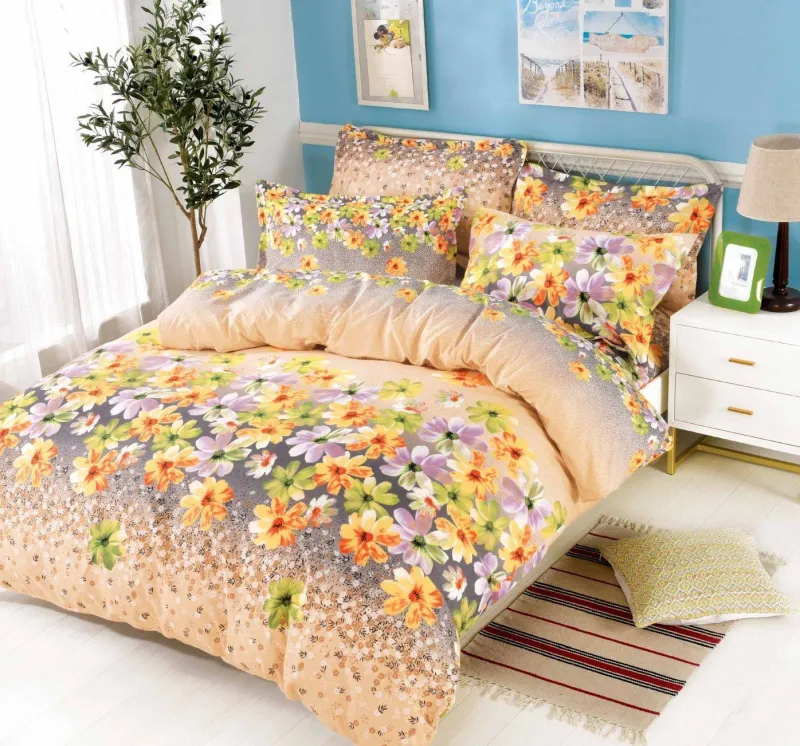 SKY HOME Lenjerie de pat Finet 6 piese,Bej,Flori de primavara-KY83