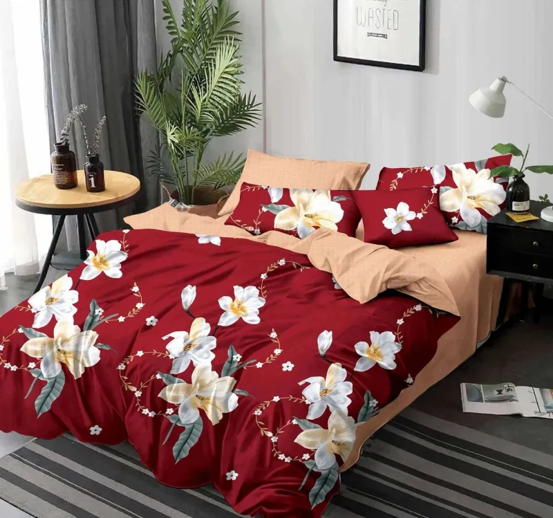 SKY HOME Lenjerie de pat Finet 6 piese,Grena cu crini albi-KY9