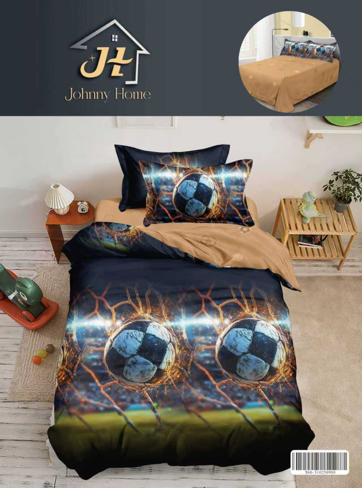 PUCIOASA Lenjerie de pat 1 Persoana,4 piese,mingii de fotbal si plasa-P59