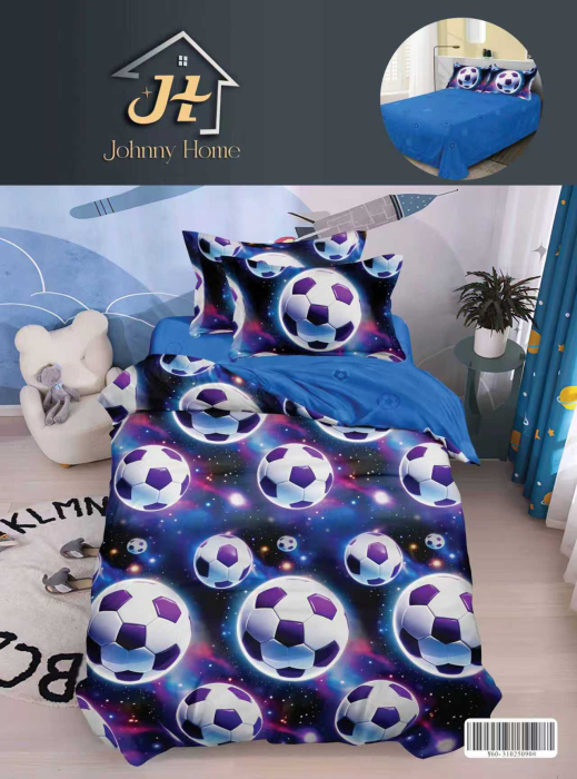 PUCIOASA Lenjerie de pat 1 Persoana,4 piese,mingi de fotbal pe un fundal albastru, spațial-P55
