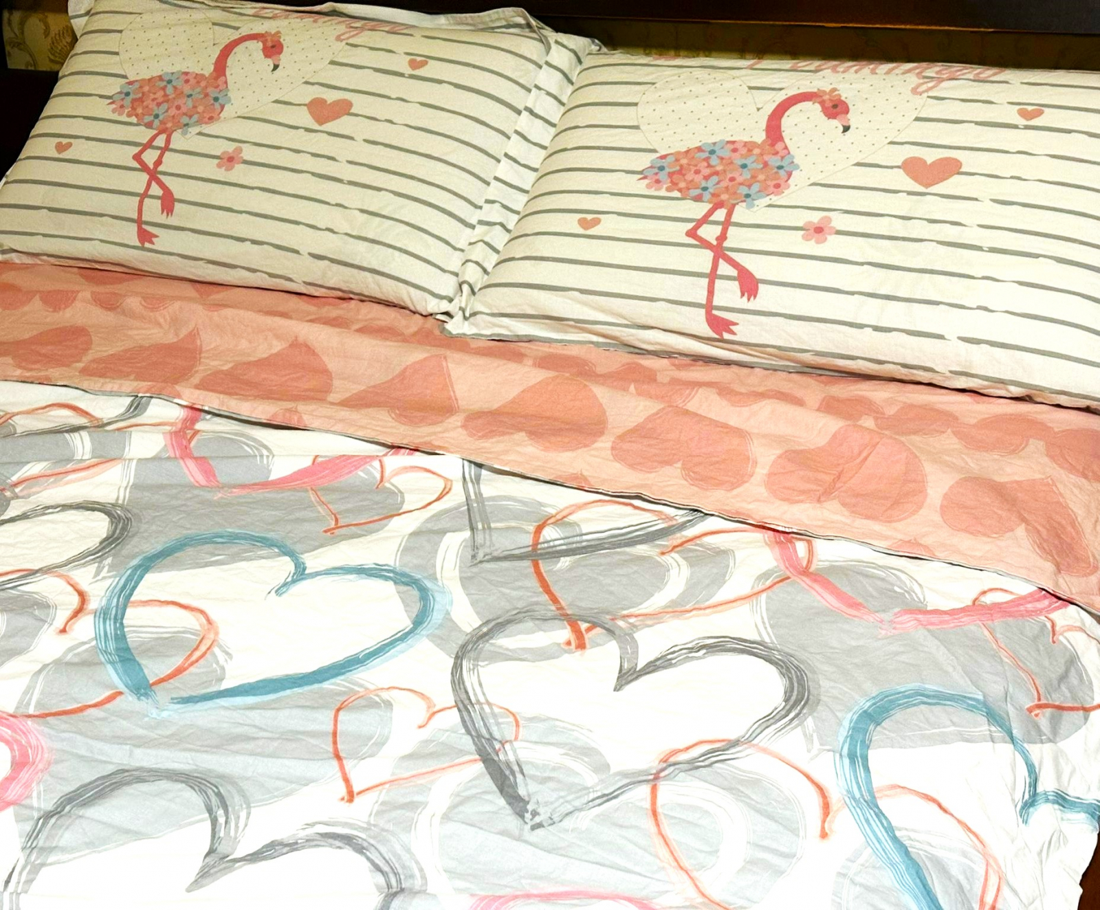 Lenjeria este suberba,Bumbac 100%,bine lucrata si ma am bucurat ca cerceaful unde bagi pilota are inchiderea cu nasturi.O sa mai cumpar una sa o am de schimb.Nu am mai avut rabdare sa o calc dupa ce am spalat-o,am pus-o asa pe pat.