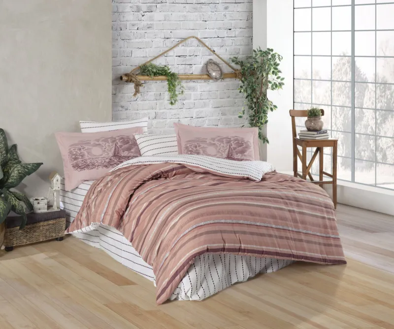 Lenjeria de pat din bumbac ranforce,este ambalat in cutie eleganta de carton si are in interior si o punga pentru cadou, fiind un cadou ideal.