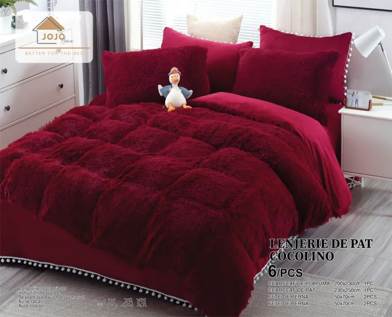 JOJO HOME Lenjerie de pat Cocolino 6 piese Fluffy,Super pufoase,Grena-COF4