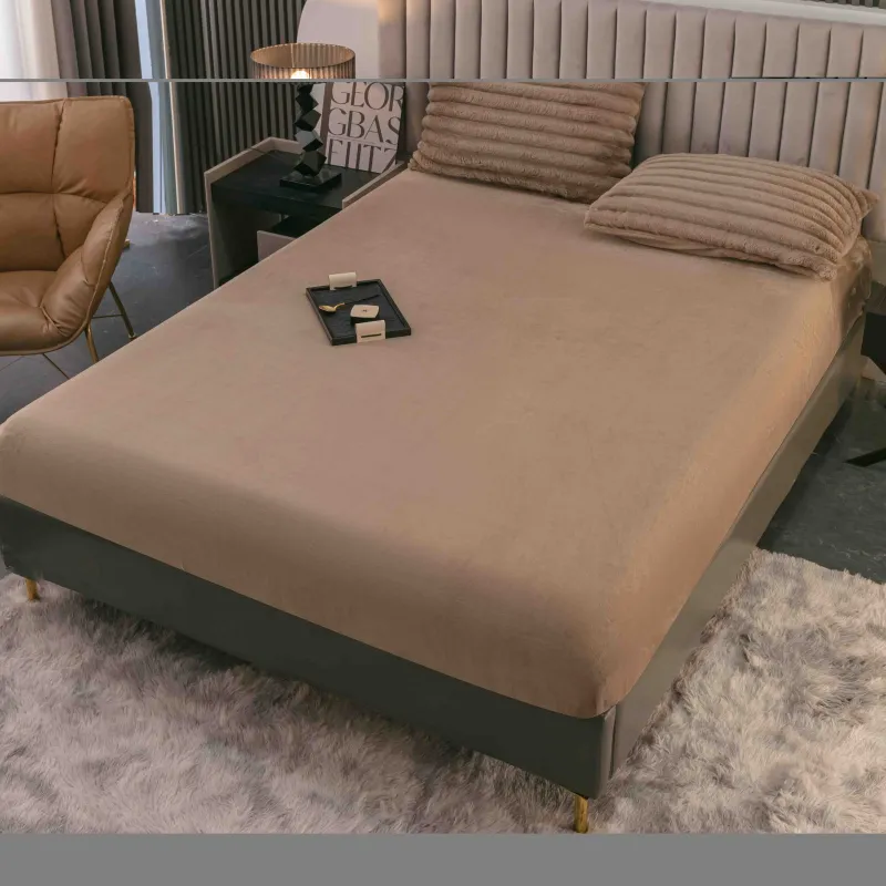 JOJO HOME Lenjerie pat dublu, Extra Pufoasa,din Blanita artificiala de Iepure, 4 piese, Maro-BV26