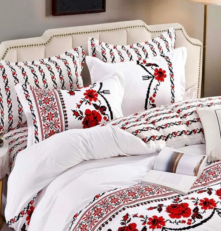 Lenjerii de pat Finet 6 piese,cu Elastic,Imprimeu Traditional Romanesc-TR2, descoperă confortul și rafinamentul oferite de setul de lenjerie de pat tip finet, format din 6 piese, într-o nuanță elegantă. Această colecție excepțională este realizată dintr-un bumbac tratat special, conferind tesaturii sale o senzație moale și durabilitate remarcabilă în timp. Este alegerea perfectă pentru a-ți menține patul mereu proaspăt și impecabil.