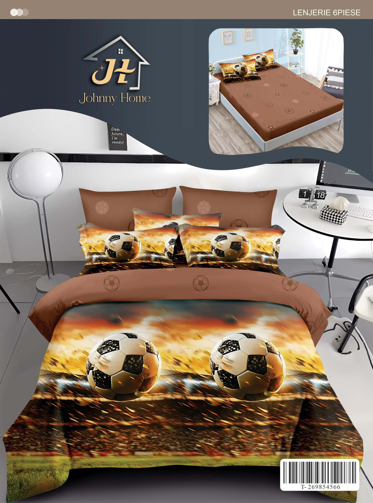 PUCIOASA Lenjerii de pat Finet 6 piese cu Elastic, Iprimeu mingi de fotbal-T334