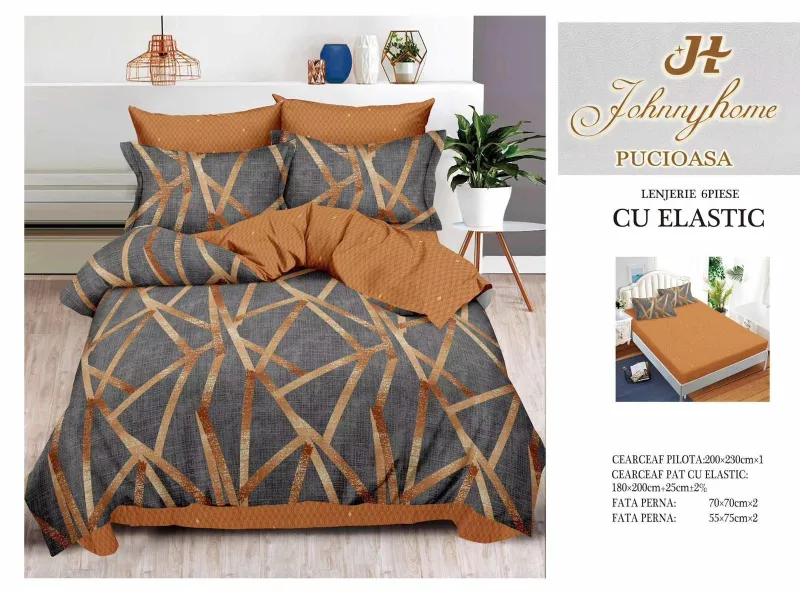 PUCIOASA Lenjerii de pat Finet 6 piese cu Elastic-T107 + CADOU