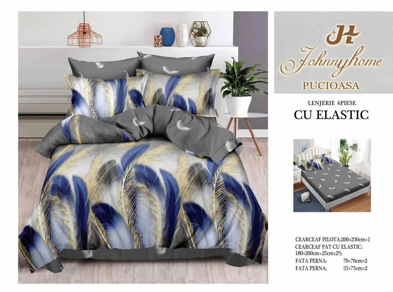 PUCIOASA Lenjerii de pat Finet 6 piese cu Elastic-T165 + CADOU