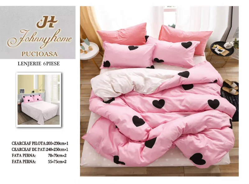 Lenjeria pentru pat dublu cu 6 piese este compatibila cu paturi care au saltelele cu urmatoarele dimensiuni: