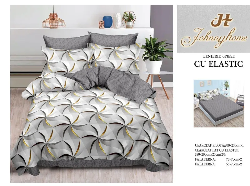 Lenjerii de pat Finet 6 piese cu Elastic- ,descoperă confortul și rafinamentul oferite de setul de lenjerie de pat tip finet, format din 6 piese, într-o nuanță elegantă. Această colecție excepțională este realizată dintr-un bumbac tratat special, conferind tesaturii sale o senzație moale și durabilitate remarcabilă în timp. Este alegerea perfectă pentru a-ți menține patul mereu proaspăt și impecabil.