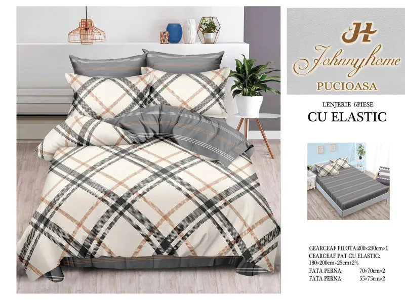 Lenjerii de pat Finet 6 piese cu Elastic-T220 ,descoperă confortul și rafinamentul oferite de setul de lenjerie de pat tip finet, format din 6 piese, într-o nuanță elegantă. Această colecție excepțională este realizată dintr-un bumbac tratat special, conferind tesaturii sale o senzație moale și durabilitate remarcabilă în timp. Este alegerea perfectă pentru a-ți menține patul mereu proaspăt și impecabil.
