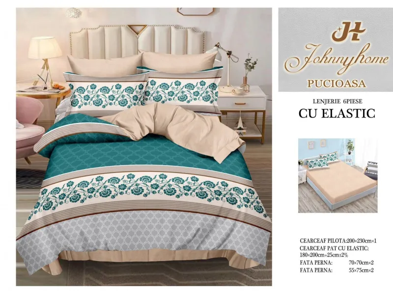 PUCIOASA Lenjerii de pat Finet 6 piese cu Elastic-T222 + CADOU